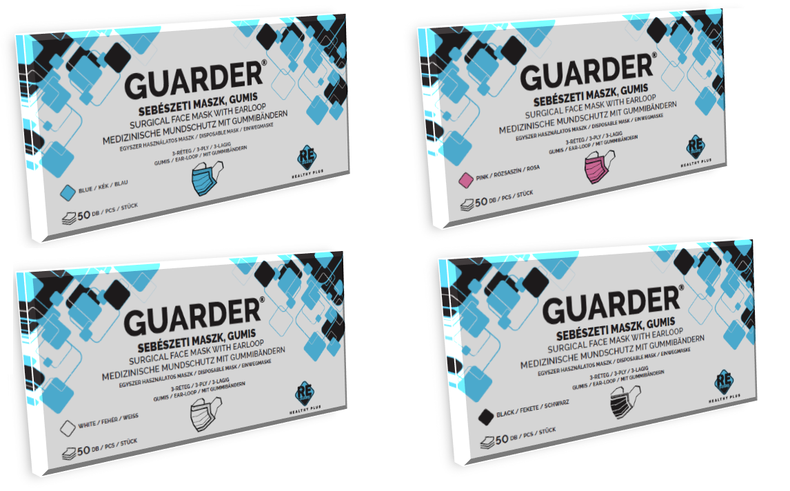 Jellemzők: háromrétegű, gumis, orrmerevítővel ellátott, légáteresztő.