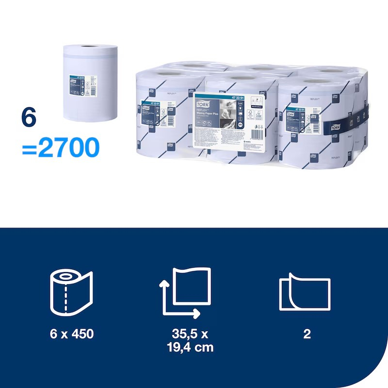 • A papír a Tork Reflex™ laponkénti adagolású belsőmagos adagolójával használható.