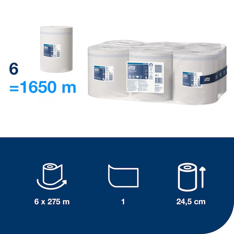 • Az egyrétegű, többcélú Tork törlőpapír enyhébb szennyeződések feltörléséhez és kéztörléshez ideális.