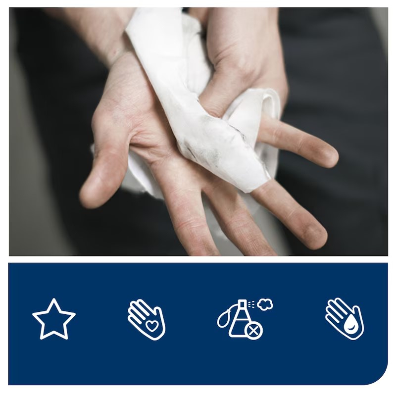 • Szappan és víz hozzáadása nélkül gyorsan, hatékonyan távolítja el a kézről a legmakacsabb szennyeződéseket.