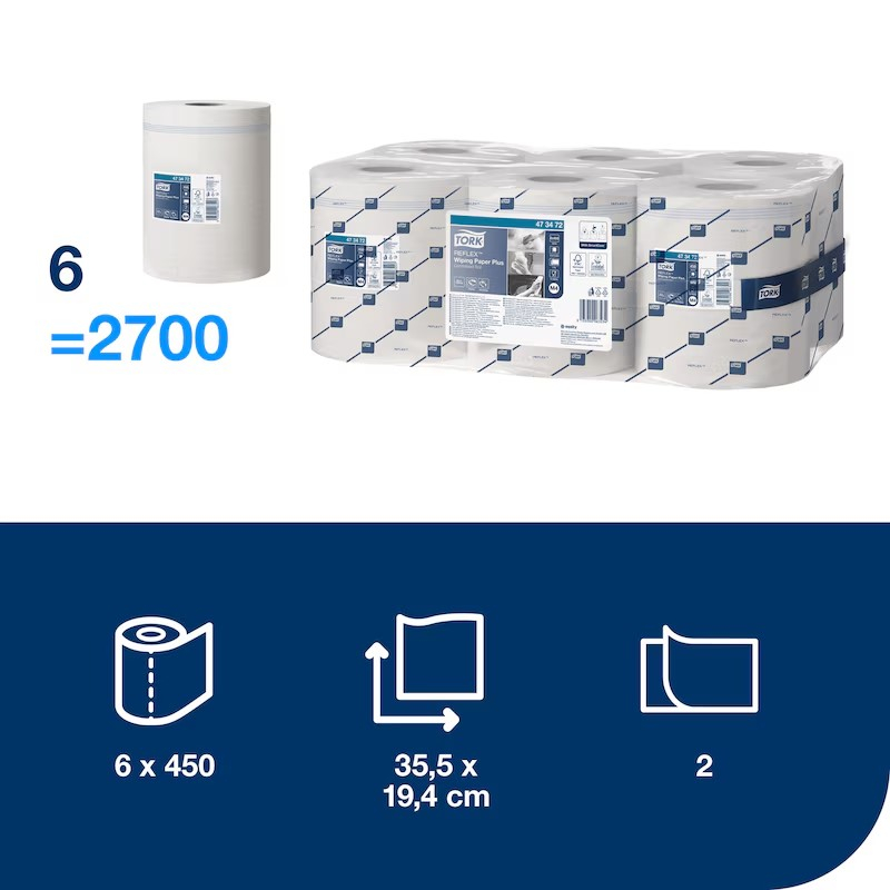 • Tork Reflex™ laponkénti adagolású belsőmagos adagolójával használható (amely jól beleillik a dolgozók munkafolyamatába, csökkenti a fogyasztást, és minimálisra csökkenti a keresztszennyeződések kialakulását)