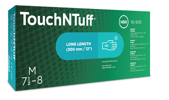 • Világelső: A TouchNTuff® 92-600, a világ vezető eldobható kesztyűje a vegyszeres fröccsenések elleni védelemben, meghosszabbított mandzsettájú változata.