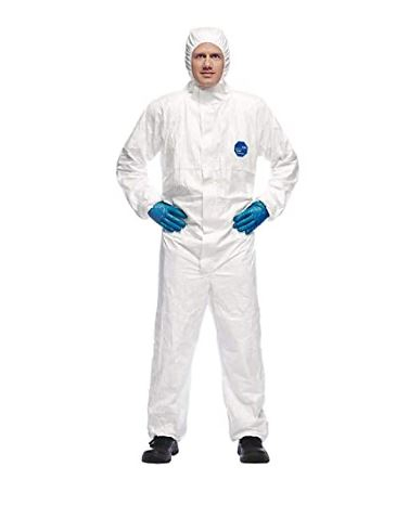 • Tyvek® 1431N polietilén anyagú (41 g/m2), fehér, kapucnis védőoverall.